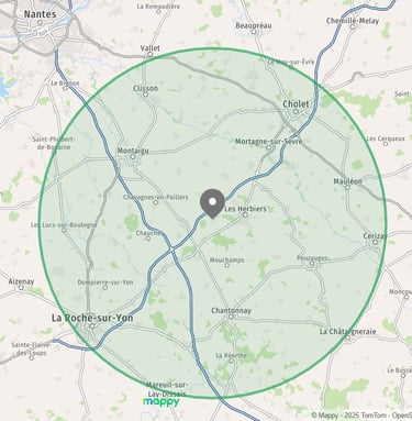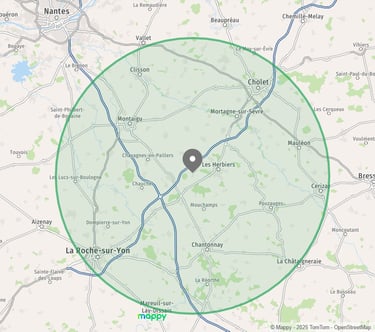 L’entreprise étant basée sur Mesnard la Barotière (85), je travaille dans un rayon de 30 kms sans frais kilométriques, au-delà de ce rayon se rajouteront à ma prestation des frais de déplacements (0.70€/km au delà des 30 kms).
